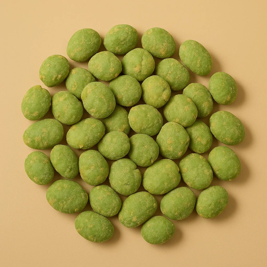 Knackige Erdnüsse mit pikanter Wasabi-Ummantelung – würzig, scharf und perfekt zum Snacken.